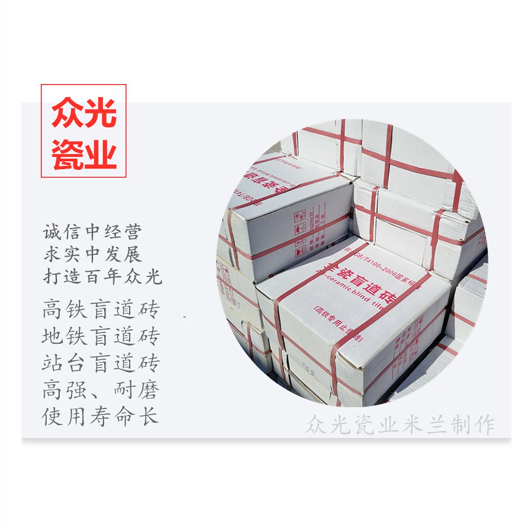 全瓷盲道磚生產(chǎn)廠家,焦作市眾光耐酸瓷業(yè)有限公司生產(chǎn)全瓷盲道磚,中黃盲道磚,耐磨,防滑,抗沖擊,色澤光鮮亮麗,適用于車站站臺